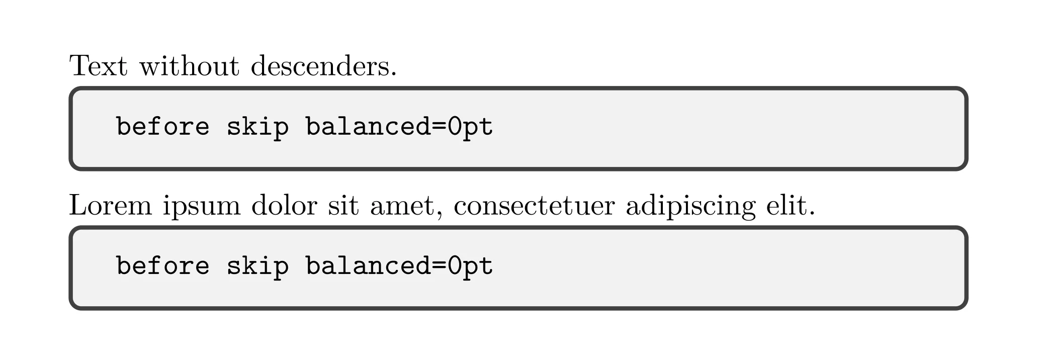 \texttt{before skip balanced=0pt}