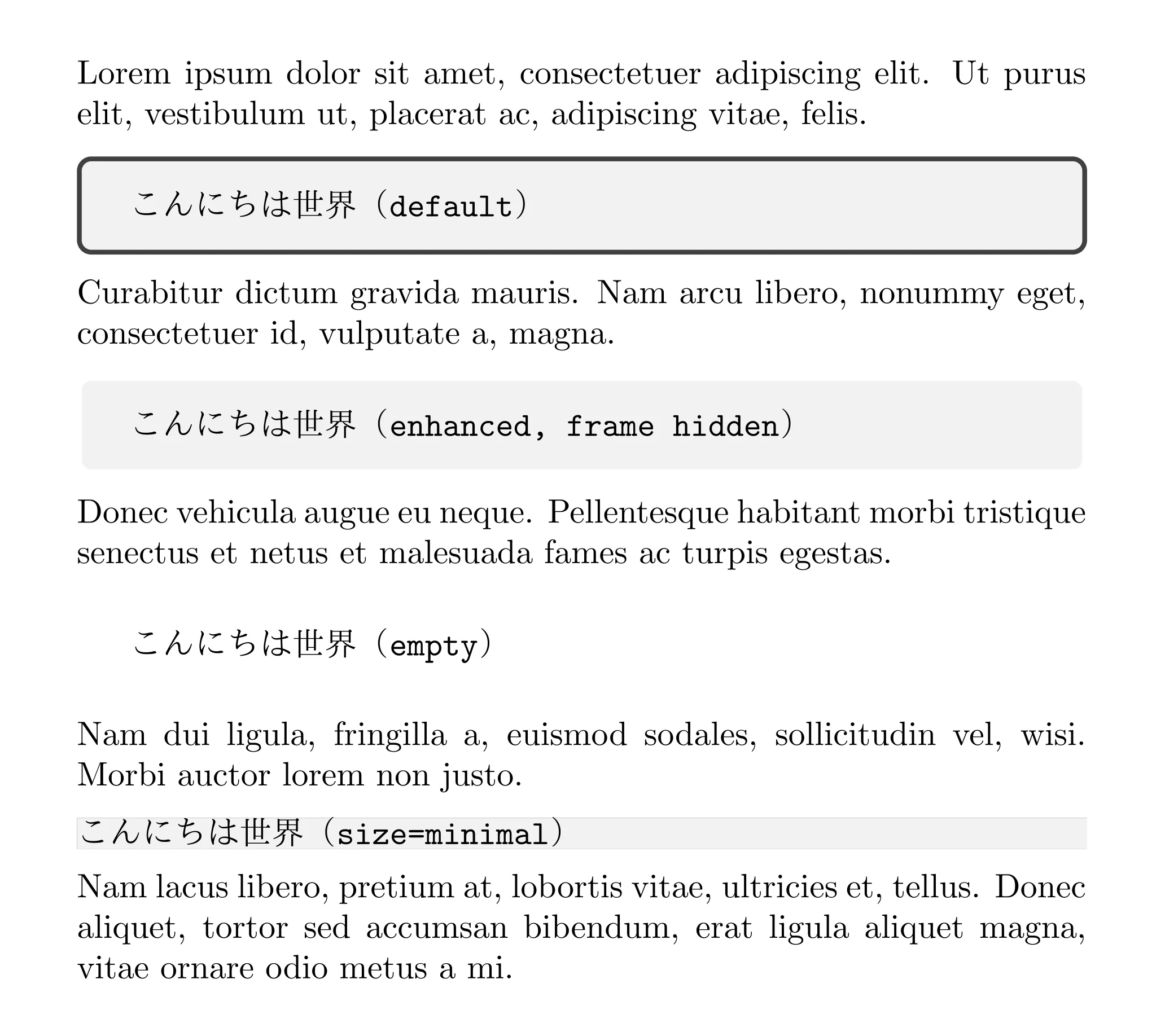 こんにちは世界(\texttt{enhanced, frame hidden})